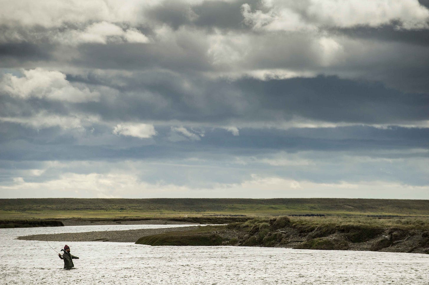The goal here is to find the right stroke length–owing to our physical differences, that will be slightly different for all of us–that delivers the fly to the target with a tight loop, turning over a foot or so above the water. In this way we can achieve great accuracy and render irrelevant most wind.